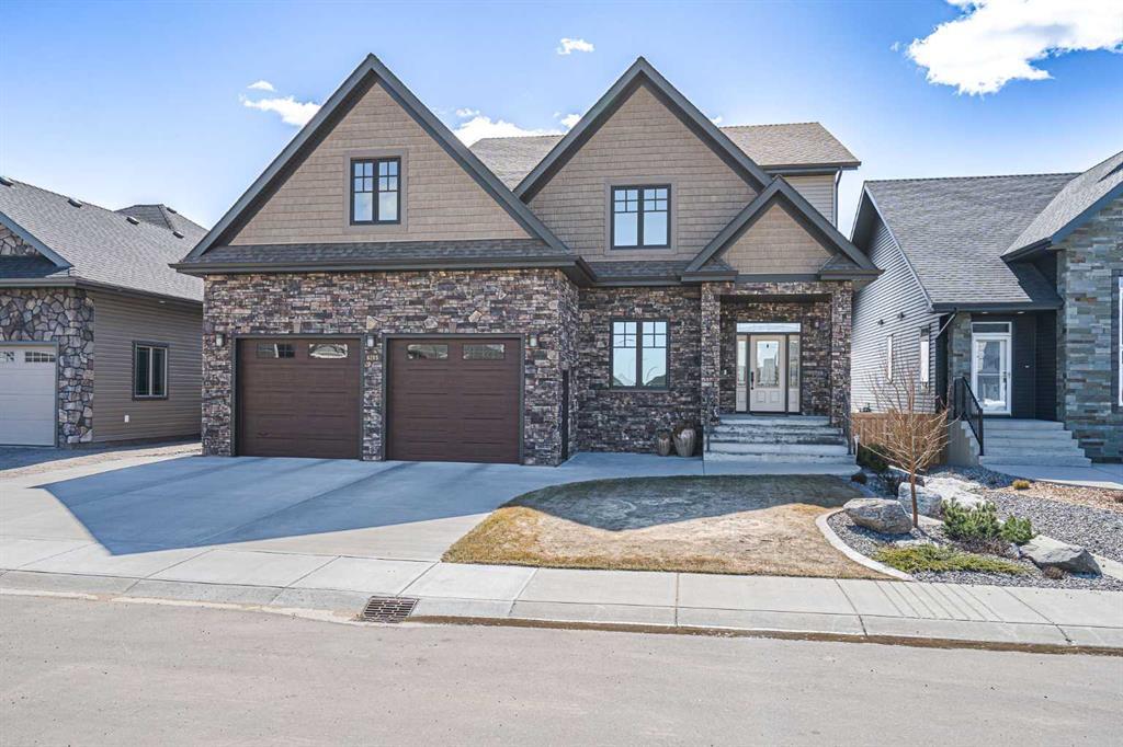 PLANS ARE AVAILABLE TO ADD 2 MORE BASEMENT BEDROOMS! Welcome to Lakeside, where luxury living meets tranquil lakeside views. This executive 2-story home boasts a walk-out basement with beautiful southern views of the lake. As you step inside, you'll be greeted by 10' ceilings on the main floor, creating an airy and spacious atmosphere. The stunning butler's pantry is perfect for entertaining guests, while the den offers a quiet space to work from home. The floor-to-ceiling stone gas fireplace is the centerpiece of the living room, providing a cozy ambiance during colder months. Moving upstairs, the second floor features a beautiful laundry room with gorgeous cabinetry and a large primary bedroom with a stunning 5-piece ensuite. Two additional bedrooms including a 390 square foot bonus room serving as a massive bedroom offer ample space for family or guests. The walk-out basement has 9' ceilings and boasts a wet bar, perfect for hosting parties or game nights. The floor-to-ceiling gas fireplace adds warmth and ambiance to the space, while the bathroom and wet bar provide convenience and functionality. Outside, the gorgeous tiered landscaping, stamped concrete patio, and walkways provide the perfect setting for outdoor entertainment or a relaxing evening by the lake. During the winter months, take advantage of walking out your back door and go for a skate! Don't miss your chance to experience luxury lakeside living in this stunning home.